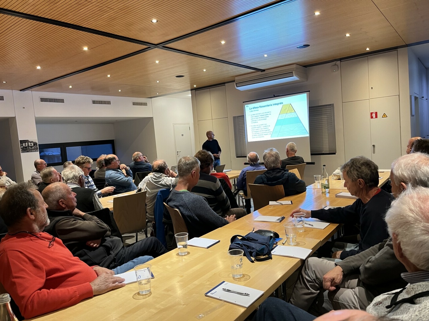 Sala multiuso, Arbedo Piano trattamenti e nuovi parassiti Relatori: Riccardo Battelli (ufficio fitosanitario), Clayton Andreoli (Omya) e Antonio Girardi (coordinatore progetto Vi-So  vino sostenibile) Alle 20 una cinquantina di soci delle Sezioni Federviti di Bellinzona – Mesolcina e Tre Valli, hanno assistito alla serata conferenza sul tema dell’uso di prodotti fitosanitari e sui nuovi parassiti, apprezzando gli interventi dei tre relatori .