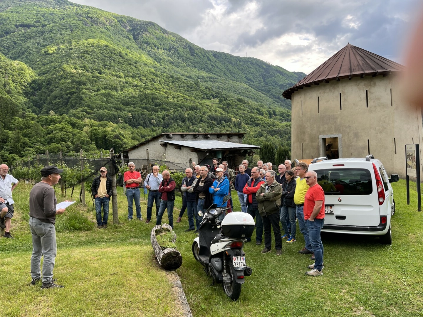 Al Portin, Agro Leggia SA di Monica Decristiphoris, Leggia Potatura verde e attualità viticola , protezione fitosanitaria Relatore: Mirto Ferretti Presso il vigneto della Cantina Agro Leggia SA di Monica Decristophoris a Leggia, una quarantina di aderenti alla Federviti di Bellinzona e Mesolcina si sono riuniti per assistere alla serata sul tema della potatura verde, dell’attualità viticola e della protezione fitosanitaria, condotta dal relatore unico Mirto Ferretti. Al termine dell’esposizione esaustiva del presidente sezionale e della discussione nata a seguito delle domande numerose e pertinenti, i presenti si sono spostati nell’agriturismo della signora Decristophoris dov’è stato servito un aperitivo particolarmente apprezzato