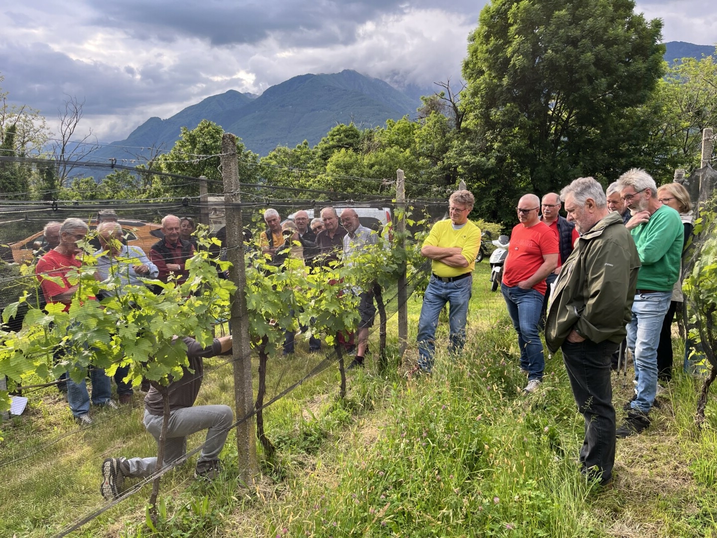 Vigneto Margnetti, Camorino Spollonatura e attualità viticola, protezione fitosanitaria Relatore: Mirto Ferretti Una trentina di viticoltrici e viticoltori hanno preso parte alla serata di formazione continua in ambito viticolo sul tema della spollonatura e della protezione fitosanitaria, nel vigneto del socio Giulio Margnetti a Camorino. Al termine delle spiegazioni del relatore Mirto Ferretti, la discussione fra i soci è continuata all’interno dello spazio suggestivo costituito dal primo fortino della fame (il meglio conservato), dove i presenti, davanti ad un buon bicchiere di vino, hanno avuto modo di tuffarsi in un pezzo di storia del Cantone Ticino.