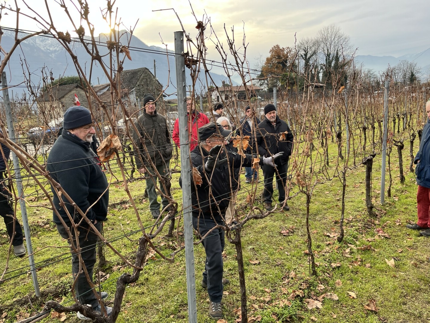Cantina Ramelli, Gudo Potatura della vite, corso teorico e pratico con castagnata Relatore: Mirto Ferretti Presso la tenuta Ramelli di Gudo, sono terminati i corsi di formazione continua organizzati dalla Federviti di Bellinzona e Mesolcina con un’esposizione, a cura di Mirto Ferretti, sul tema della potatura invernale delle viti. La trentina di partecipanti si è poi ritrovata all’interno della cantina per la castagnata offerta all’insegna della tradizione. Alle castagne preparate dall’amico Mauro si sono accompagnati ottimi salumi ed i vini delicati prodotti da chi ci ha ospitati. A Flavio Ramelli vanno i ringraziamenti per l’ospitalità ed a tutti un arrivederci alla prossima stagione formativa unitamente ai migliori auguri per le festività imminenti.