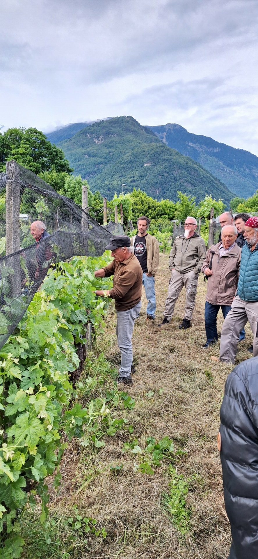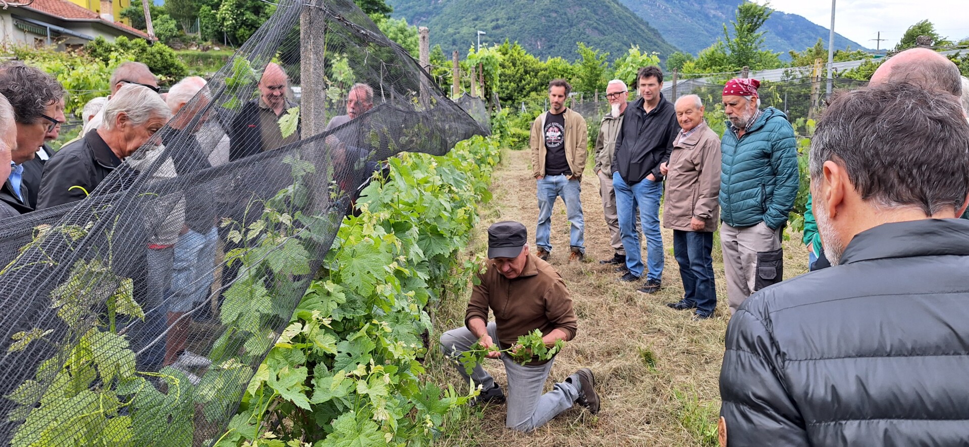 Una quarantina di viticoltori ha preso parte alla serata di formazione continua sul tema della potatura verde, delle attualità viticole e della necessità di condurre un’appropriata lotta alle malattie mediante prodotti fitosanitari. La formazione ha avuto luogo pressopresso il vigneto nuovo di uve bianche di Nicolao Fuchs della cantina Ai Filat. Si tratta del vigneto Ai Nos nel quale l’amico Nicolao ha impiantato un vigneto di uve bianche Viognier e Chardonnay. Dopo la parte pratico teorica i partecipanti hanno avuto modo di continuare le discussioni presso la sala di degustazione della cantina I Filat, appena approntata, nella quale è stato loro servito un aperitivo assai ricco.