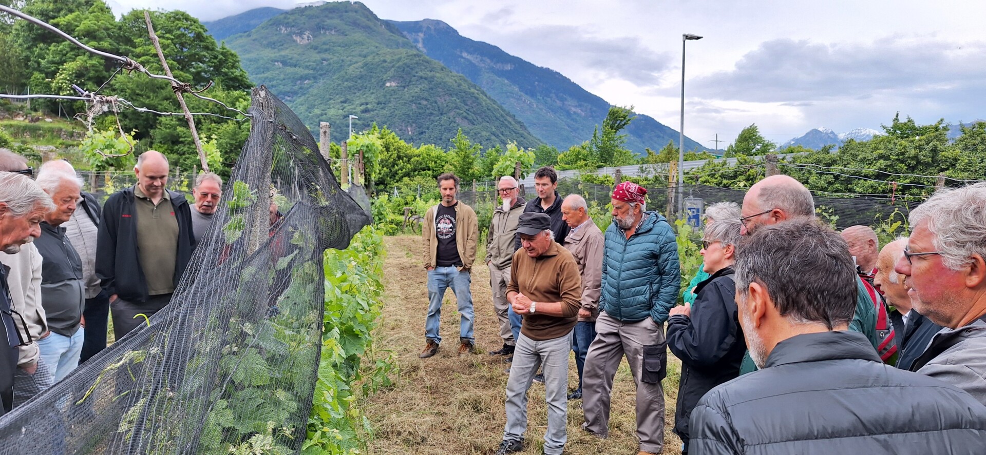 Una quarantina di soci della Federviti di Bellinzona e Mesolcina si è riunita presso la cantina Magiro, di Paolo Robbiani a Gorduno, per assistere all’attività di formazione continua sul tema della spollonatura e della protezione fitosanitaria della vite . La formazione in vigna è stata impartita dal Presidente sezionale Mirto Ferretti. In seguito, i partecipanti, tornati in cantina, hanno avuto modo di degustare i vini eccellenti prodotti dalla Magiro e di gustare un aperitivo ottimo quanto ricco.