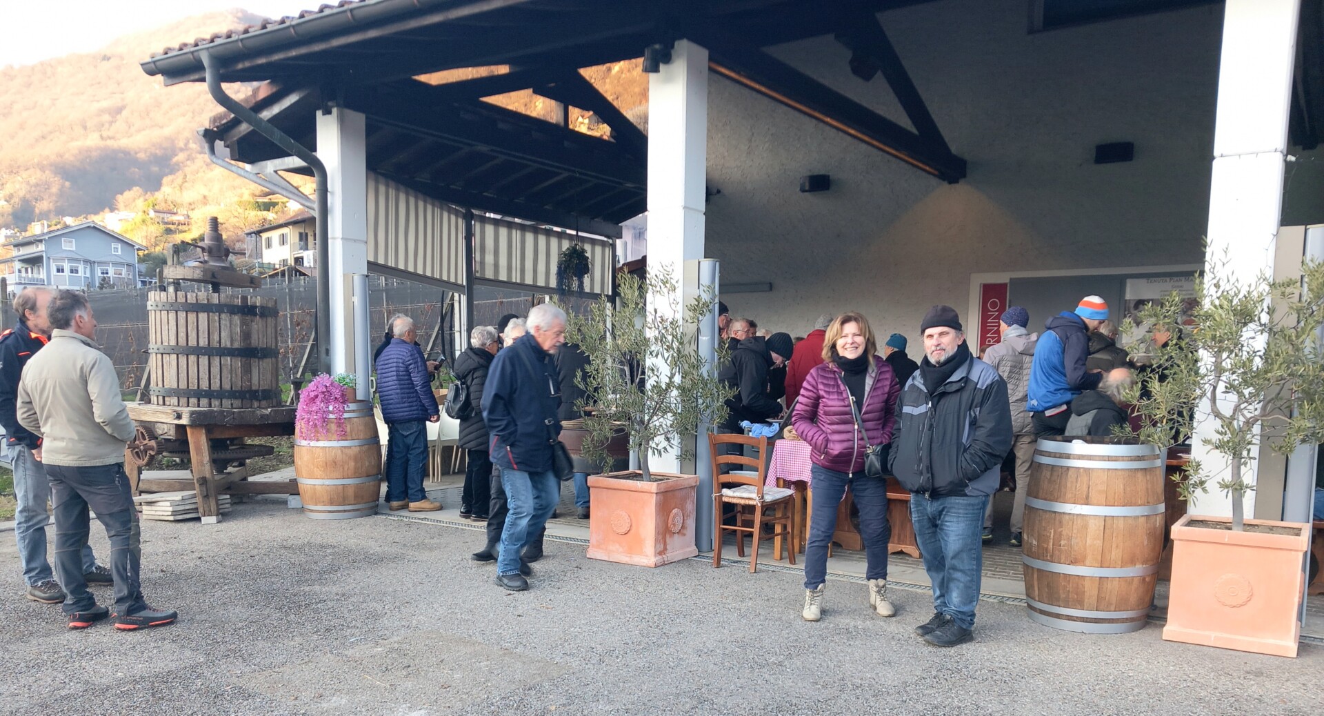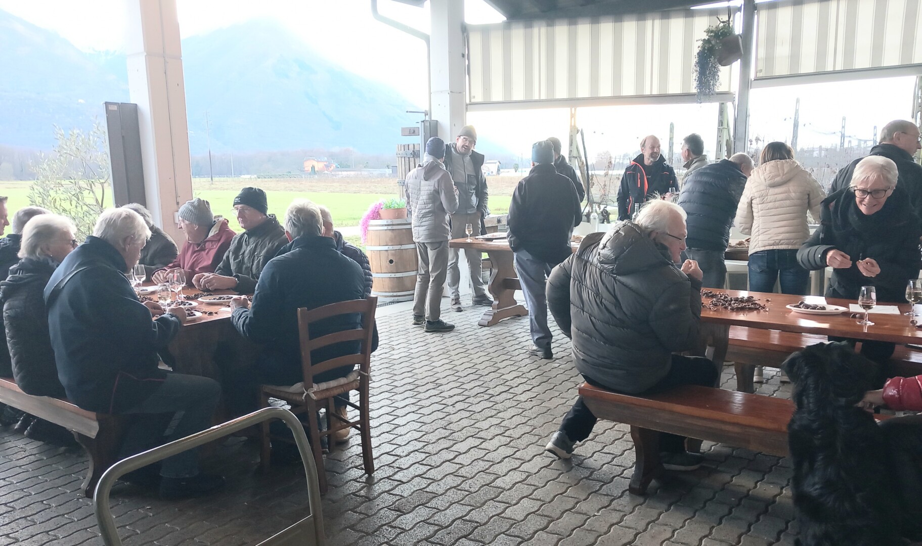 Dopo circa un’ora e mezza di attività pratica, ci siamo spostati nell’accogliente porticato della cantina per gustare la castagnata preparata dal nostro socio di comitato Mauro. Il tutto è stato ovviamente accompagnato e apprezzato con un buon bicchiere di vino bianco e rosso prodotto da Tiziano Tettamanti, che ringraziamo per la sua ospitalità
